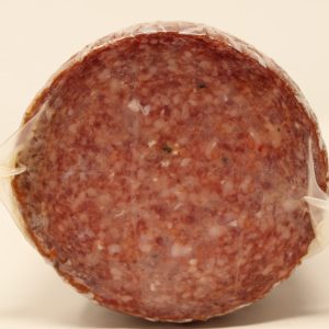 This salami is produced using a fine blend of pork. The cayenne pepper gives the salami a semi-hot spicy flavor. Approximately 2.5 lb package. This item comes as one full piece, not pre-sliced.