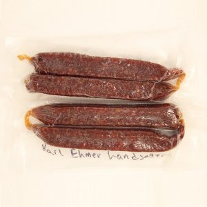 Dry sausage with a hint of caraway flavor. Anyone who tries this product loves it! Each package comes with Two (2) Landjaeger Sausages in total